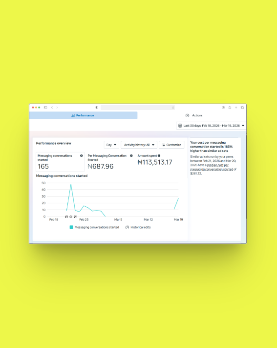 But a great website is only the foundation. To truly dominate, you need the Brand Authority that stops the scroll and positions you as the only logical choice in your industry. We take your vision and turn it into a high-authority narrative that builds immediate trust, while our Performance Marketing strategies act as the fuel. We move far beyond ‘likes’ and ‘follows’ to focus on real ROI, using data-backed Meta and Google campaigns to drive massive revenue—just like we did when we turned a strategic ad spend into over ₦148 Million in sales and hundreds of qualified inquiries.